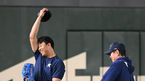 [OSEN=도쿄, 손용호 기자] 8일 도쿄 도쿄돔에서 2023 WBC(월드베이스볼클래식) 에 참가한 한국 야구대표팀이 공식 훈련을 가졌다.배영수 코치가 고우석과 이야기를 나누고 있다.2023.03.08/spjj@osen.co.kr