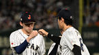 [OSEN=도쿄(일본), 손용호 기자] 이강철 감독이 이끄는 대한민국 월드베이스볼클래식(WBC) 대표팀이 10일 일본 도쿄돔에서 일본과 1라운드 B조 경기를 가졌다.일본 오타니와 사사키가 주먹을 맞대고 있다. 2023.03.10 /spjj@osen.co.kr