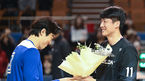 [OSEN=잠실실내, 김성락 기자] 10일 서울 잠실실내체육관에서 ‘2022-2023 SKT 에이닷 프로농구’ 서울 삼성과 안양 KGC의 경기가 열렸다. 경기 시작에 앞서 삼성 이정현이 KGC 양희종에게 은퇴기념 꽃다발을 전하고 있다. 2023.03.10 /ksl09