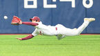[OSEN=고척, 박준형 기자] 10일 서울 고척스카이돔에서 키움 히어로즈와 두산 베어스의 연습경기가 진행됐다.1회초 두산 선두타자 김대한의 타구를 키움 송재선 중견수가 호수비 펼치며 잡아내고 있다. 2023.03.10 / soul1014@osen.co.kr