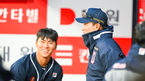 [OSEN=고척, 박준형 기자] 10일 서울 고척스카이돔에서 키움 히어로즈와 두산 베어스의 연습경기가 진행됐다.2회말 종료 후 두산 이승엽 감독이 윤준호 포수와 이야기 나누며 미소 짓고 있다. 2023.03.10 / soul1014@osen.co.kr