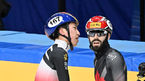 [OSEN=민경훈 기자] 11일 서울 목동 아이스링크에서 '2023 KB금융 국제빙상경기연맹(ISU) 쇼트트랙 세계선수권대회' 본선 경기가 진행됐다.남자 1500m Finals A에서 한국 박지원이 1위로 결승점을 통과한 후 기뻐하고 있다. 2023.03.11 / rumi@