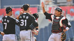 [OSEN=창원, 이석우 기자] 11일 창원 NC파크에서 2023 신한은행 SOL KBO리그 NC 다이노스와 LG 트윈스의 연습경기가 열렸다. LG 트윈스 허도환과 선수들이 2-0으로 승리한 후 기뻐하고 있다. 2023.03.11 / foto0307@osen.co.kr