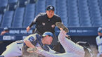 [OSEN=창원, 이석우 기자] 11일 창원 NC파크에서 2023 신한은행 SOL KBO리그 NC 다이노스와 LG 트윈스의 연습경기가 열렸다. LG 트윈스 손호영이 7회초 서건창의 안타때 홈까지 노렸으나 포수 안중열에게 태그 아웃당하고 있다. 2023.03.11 /