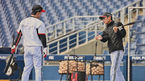 [OSEN=창원, 이석우 기자] 11일 창원 NC파크에서 2023 신한은행 SOL KBO리그 NC 다이노스와 LG 트윈스의 연습경기가 열렸다. LG 트윈스 염경엽 감독이 경기 전 박동원에게 타격 자세를 조언하고 있다. 2023.03.11 / foto0307@osen.co.kr