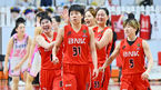 [OSEN=부산, 이석우 기자] 12일 부산 사직실내체육관에서 신한은행 SOL 2022-2023 여자프로농구 부산 BNK 썸과 용인 삼성생명의 플레이오프 1차전 경기가 열렸다. 부산 BNK 썸 선수들이 4쿼터 극적인 역전승을 올리고 기쁨을 나누고 있다
