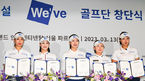 [OSEN=박준형 기자] 13일 오후 서울 삼성동 그랜드 인터컨티넨탈에서 두산건설 We’ve 골프단 창단식이 진행됐다. 골퍼 유현주와 박결, 유효주, 임희정, 김민솔이 첫시즌 함께한다.유현주(왼쪽부터)와 박결 유효주, 임희정, 김민솔
