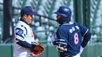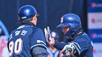 [OSEN=부산, 이석우 기자] 13일 부산 사직구장에서 2023 신한은행 SOL KBO리그 롯데 자이언츠와 두산 베어스의 시범경기가 열린다. 두산 베어스 송승환이 2회초 좌중원 솔로 홈런을 치고 이승엽 감독과 하이파이브를 하고 있다. 2023.03.