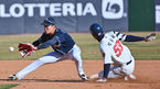 [OSEN=부산, 이석우 기자] 14일 부산 사직구장에서 2023 신한은행 SOL KBO리그 롯데 자이언츠와 두산 베어스의 시범경기가 열렸다. 롯데 자이언츠 박승욱이 7회말 1사 3루 김민석의 유격수 앞 땅볼때 협살당하고 있다. 2023.03.14 / foto0307