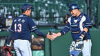 [OSEN=부산, 이석우 기자] 14일 부산 사직구장에서 2023 신한은행 SOL KBO리그 롯데 자이언츠와 두산 베어스의 시범경기가 열렸다. 두산 베어스 허경민과 안승한이 7회말 1사 3루 롯데 자이언츠 박승욱을 잡고 하이파이브를 하고 있다.
