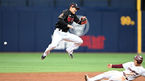[OSEN=고척, 지형준 기자] 14일 오후 서울 고척스카이돔에서 ‘2023 신한은행 SOL KBO리그’ 키움 히어로즈와 KT 위즈의 시범경기가 열렸다.3회말 1사 1,3루에서 KT 황재균이 키움 임지열의 3루땅볼에 2루 악송구로 선제 실점을 허용하며