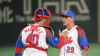 [OSEN=도쿄, 손용호 기자] 15일 도쿄 도쿄돔에서 2023 WBC(월드베이스볼클래식) 8강전 쿠바와 호주의 경기가 벌어졌다.3회초 2사 1,2루 쿠바 로드리메스가 2연속 볼넷을 내주자 포수가 마운드를 방문하고 있다.2023.03.15/spjj@osen.co.kr