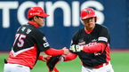 [OSEN=고척, 박준형 기자] 15일 오후 서울 고척스카이돔에서 2023 신한은행 SOL KBO리그 시범경기 키움 히어로즈와 KIA 타이거즈의 경기가 진행됐다.6회초 1사 2루 KIA 이우성이 1타점 적시 3루타를 날린뒤 조재영 3루 코치와 하이파이브