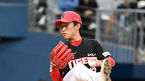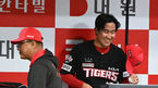 [OSEN=고척, 지형준 기자] 16일 오후 서울 고척스카이돔에서 ‘2023 신한은행 SOL KBO리그’ 키움 히어로즈와 KIA 타이거즈의 시범경기가 열렸다.4회말 1사 1루에서 KIA 윤영철이 키움 박주홍을 1루땅볼로 처리하며 미소짓고 있다. 2023.03