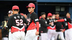 [OSEN=고척, 지형준 기자] 16일 오후 서울 고척스카이돔에서 ‘2023 신한은행 SOL KBO리그’ 키움 히어로즈와 KIA 타이거즈의 시범경기가 열렸다.4회말 수비를 마친 KIA 윤영철이 황대인과 기뻐하고 있다. 2023.03.16 /jpnews@osen.co.kr