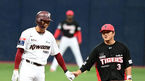 [OSEN=고척, 지형준 기자] 16일 오후 서울 고척스카이돔에서 ‘2023 신한은행 SOL KBO리그’ 키움 히어로즈와 KIA 타이거즈의 시범경기가 열렸다.1회말 키움 이정후와 KIA 김선빈이 인사를 나누고 있다. 2023.03.16 /jpnews@osen.co.kr