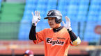 [OSEN=대전, 조은정 기자]18일 대전 한화생명이글스파크에서 '2023 KBO리그 시범경기' 한화-키움의경기가 열렸다.4회말 1사 3루 한화 박정현이 달아나는 적시 2루타를 날린 뒤 세리머니를 하고 있다. 2023.03.18 /cej@osen.co.kr