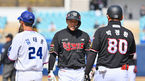 [OSEN=대전, 조은정 기자]18일 대전 한화생명이글스파크에서 '2023 KBO리그 시범경기' 한화-키움의경기가 열렸다.1회초 2사 키움 러셀이 한화 선발 문동주 상대로 삼진을 당한 뒤 아쉬워하고 있다. 22023.03.18 /cej@osen.co.kr