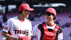 [OSEN=광주, 조은정 기자] 19일 광주 기아챔피언스필드에서 2023 KBO리그 두산 베어스와 KIA 타이거즈의 시범경기가 열렸다.6회초 이닝을 마친 KIA 이의리가 포수 주효상과 미소 지으며 더그아웃으로 향하고 있다. 2023.03.19 /cej@osen.co.kr