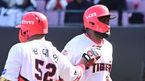 [OSEN=광주, 조은정 기자] 19일 광주 기아챔피언스필드에서 2023 KBO리그 두산 베어스와 KIA 타이거즈의 시범경기가 열렸다.6회말 KIA 선두타자 소크라테스가 달아나는 우월 홈런을 날린 뒤 황대인과 기뻐하고 있다..2023.03.19 /cej@osen.co