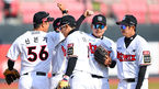 [OSEN=창원, 이석우 기자] 20일 창원 NC파크에서 2023 신한은행 SOL KBO리그 NC 다이노스와 키움 히어로즈의 경기가 열렸다. 키움 히어로즈 홍원기 감독이 NC 다이노스에 6-0으로 승리한 후 선수들과 기쁨을 나누고 있다. 2023.03.20 / foto030