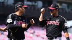 [OSEN=광주, 조은정 기자] 20일 광주 기아챔피언스필드에서 2023 KBO리그 LG 트윈스와 KIA 타이거즈의 시범경기가 열렸다.5회말 수비를 마친 LG 문보경, 김민성이 더그아웃으로 향하며 주먹을 맞대고 있다. 2023.03.20 /cej@osen.co.kr