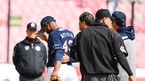 [OSEN=수원, 박준형 기자] 20일 오후 경기도 수원KT위즈파크에서 2023 신한은행 SOL KBO리그 시범경기 KT 위즈와 두산 베어스의 경기가 진행됐다.5회말 KT 이상호의 타구에 맞은 두산 알칸타라가 선수 보호 차원에서 교체되고 있다 . 20