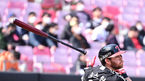 [OSEN=수원, 박준형 기자] 20일 오후 경기도 수원KT위즈파크에서 2023 신한은행 SOL KBO리그 시범경기 KT 위즈와 두산 베어스의 경기가 진행됐다.5회말 KT 이상호가 안타를 날리고 있다 2023.03.20 / soul1014@osen.co.kr