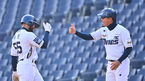 [OSEN=창원, 이석우 기자] 21일 창원 NC파크에서 2023 신한은행 SOL KBO리그 NC 다이노스와 키움 히어로즈의 경기가 열렸다. NC 다이노스 김한별이 9회말 1사 3루 동점 만드는 1타점 내야 땅볼을 치고 있다. 2023.03.21 / foto0307@osen.co.kr