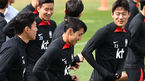 [OSEN=파주, 이대선 기자] 클린스만 신임 감독이 이끄는 대한민국 축구 국가대표팀이 22일 오전 경기도 파주 국가대표트레이닝센터(NFC)에서 공식 훈련을 가졌다.김민재가 선수들과 몸을 풀며 미소짓고 있다. 2023.03.22 /sunday@osen.co.kr