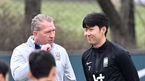 [OSEN=파주, 이대선 기자] 클린스만 신임 감독이 이끄는 대한민국 축구 국가대표팀이 22일 오전 경기도 파주 국가대표트레이닝센터(NFC)에서 공식 훈련을 가졌다.손흥민이 클린스만 감독의 말에 미소짓고 있다. 2023.03.22 /sunday@osen.co