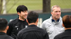 [OSEN=파주, 이대선 기자] 클린스만 신임 감독이 이끄는 대한민국 축구 국가대표팀이 22일 오전 경기도 파주 국가대표트레이닝센터(NFC)에서 공식 훈련을 가졌다.손흥민이 안드레아서 쾨프케 코치와 이야기를 나누고 있다. 2023.03.2