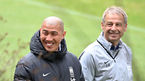 [OSEN=파주, 이대선 기자] 클린스만 신임 감독이 이끄는 대한민국 축구 국가대표팀이 22일 오전 경기도 파주 국가대표트레이닝센터(NFC)에서 공식 훈련을 가졌다.훈련에 앞서 차두리 어드바이저가 클린스만 감독과 이야기를 나누
