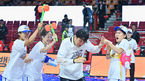 [OSEN=부산, 이석우 기자] 23일 부산 사직실내체육관에서 신한은행 SOL 2022-2023 여자프로농구 부산 BNK 썸과 아산 우리은행의 챔피언 결정전 3차전 경기가 열렸다. 통합우승을 차지한 우리은행 위성우 감독과 선수들이 환호하고 있다
