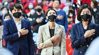 [OSEN=부산, 이석우 기자] 23일 부산 사직실내체육관에서 신한은행 SOL 2022-2023 여자프로농구 부산 BNK 썸과 아산 우리은행의 챔피언 결정전 3차전 경기가 열렸다. 우리은행 위성우 감독과 전주원코치, 임영희 코치가 국민의례를 하