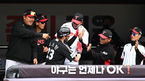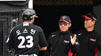 [OSEN=수원, 이대선 기자] 23일 수원 KT위즈파크에서 2023 신한은행 SOL KBO리그 시범경기 KT 위즈와 LG 트윈스의 경기가 열렸다. 7회초 무사에서 LG 오스틴이 좌월 솔로 홈런을 치고 더그아웃에서 코치진의 축하를 받고 있다. 2023.03.23 /