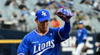 [OSEN=고척, 최규한 기자] 23일 오후 서울 고척스카이돔에서 ‘2023 신한은행 SOL KBO리그’ 시범경기 키움 히어로즈와 삼성 라이온즈의 경기가 열렸다.7회말 2사 주자없는 상황 키움 박주홍의 1루수 땅볼 때 삼성 투수 원태인이 송구
