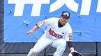 [OSEN=수원, 이대선 기자] 23일 수원 KT위즈파크에서 2023 신한은행 SOL KBO리그 시범경기 KT 위즈와 LG 트윈스의 경기가 열렸다. 6회말 무사 1루에서 LG 송찬의가 KT 황재균의 파울 타구를 잡고 있다. 송찬의의 포구 때 발이 KT 더그아웃