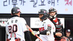 [OSEN=수원, 이대선 기자] 23일 수원 KT위즈파크에서 2023 신한은행 SOL KBO리그 시범경기 KT 위즈와 LG 트윈스의 경기가 열렸다. 3회말 1사에서 KT 박경수가 중월 솔로 홈런을 치고 박정환 코치의 축하를 하고 있다. 2023.03.23 /sunday@osen.co.