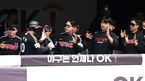 [OSEN=수원, 이대선 기자] 23일 수원 KT위즈파크에서 2023 신한은행 SOL KBO리그 시범경기 KT 위즈와 LG 트윈스의 경기가 열렸다. 4회초 무사 3루에서 LG 박동원이 우전 적시타 때 홈을 밟은 3루주자 오지환이 더그아웃에서 동료들의 축