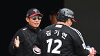 [OSEN=수원, 이대선 기자] 23일 수원 KT위즈파크에서 2023 신한은행 SOL KBO리그 시범경기 KT 위즈와 LG 트윈스의 경기가 열렸다. 3회초 무사에서 LG 김기연이 좌월 솔로 홈런을 치고 염경엽 감독의 축하를 받고 있다. 2023.03.23 /sunday@osen.