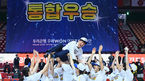 [OSEN=부산, 이석우 기자] 23일 부산 사직실내체육관에서 신한은행 SOL 2022-2023 여자프로농구 부산 BNK 썸과 아산 우리은행의 챔피언 결정전 3차전 경기가 열렸다. 챔피언 결정전 우승을 차지한 우리은행 선수들이 기쁨을 나누고 있