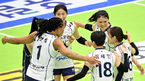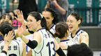 [OSEN=수원, 민경훈 기자] 23일 오후 수원체육관에서 ‘도드람 2022-2023 V리그’ 여자부 포스트시즌 플레이오프 1차전 현대건설과 한국도로공사의 경기가 열렸다.1세트를 먼저 따낸 한국도로공사 선수들이 기뻐하고 있다. 2023.03.23 /
