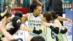 [OSEN=부산, 이석우 기자] 23일 부산 사직실내체육관에서 신한은행 SOL 2022-2023 여자프로농구 부산 BNK 썸과 아산 우리은행의 챔피언 결정전 3차전 경기가 열렸다. 챔피언 결정전 우승을 차지한 우리은행 선수들이 기쁨을 나누고 있