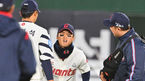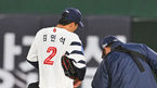 [OSEN=부산, 이석우 기자] 25일 부산 사직구장에서 2023 신한은행 SOL KBO리그 롯데 자이언츠와 한화 이글스의 경기가 열렸다. 롯데 자이언츠 안권수가 4회초 수비 준비를 하다 통증을 호소하며 교체되고 있다. 2023.03.25 / foto0307@osen.co.
