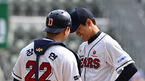 [OSEN=잠실, 최재현 기자] 25일 오후 서울 잠실야구장에서 ‘2023 신한은행 SOL KBO리그’ 시범경기 삼성 라이온즈와 두산 베어스의 경기가 열렸다.3회 초 두산 박신지와 장승현이 대회를 나누고 있다. 2023.03.25 / hyun309@osen.co.kr