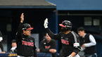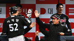 [OSEN=고척, 이대선 기자] 25일 오후 서울 고척스카이돔에서 ‘2023 신한은행 SOL KBO리그’ 시범경기 키움 히어로즈와 LG 트윈스의 경기가 열렸다.5회초 무사 1루에서 LG 이재원이 좌월 투런 홈런을 치고 더그아웃에서 염경엽 감독과