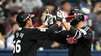 [OSEN=고척, 이대선 기자] 25일 오후 서울 고척스카이돔에서 ‘2023 신한은행 SOL KBO리그’ 시범경기 키움 히어로즈와 LG 트윈스의 경기가 열렸다.5회초 무사 1루에서 LG 이재원이 좌월 투런 홈런을 치고 송찬의와 하이파이브를 하고