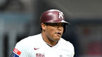 [OSEN=고척, 이대선 기자] 25일 오후 서울 고척스카이돔에서 ‘2023 신한은행 SOL KBO리그’ 시범경기 키움 히어로즈와 LG 트윈스의 경기가 열렸다.2회말 무사에서 키움 러셀이 중전 안타를 치고 환호하고 있다. 2023.03.25 /sunday@osen.co.kr