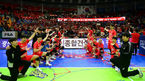[OSEN=수원, 최재현 기자] 26일 수원체육관에서 도드람 2022-23 V-리그 남자부 플레이오프 2차전 현대캐피탈과 한국전력의 경기가 열렸다.이날 경기는 세트 스코어 3-2(25-18 21-25 25-18 25-27 18-16)로 한국전력이 승리를 거뒀다.한국전력 선